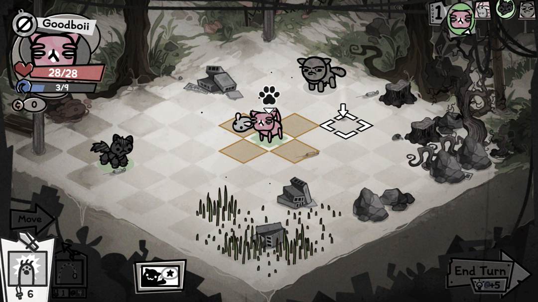 喵喵的结合是一款回合制战术角色扮演游戏,英文名叫Mewgenics,玩家在游戏中将来到布恩县,你需要集合家中的猫丁来组建终极喵喵大军,并通过培养和强化,派它们踏上一场颇具深度和难度的回合制冒险之旅。同时喵喵的结合游戏采用回合制战术闯关玩法,玩家需控制猫咪的站位和走位,以此来对敌人造成更多伤害,而且每次闯关还可获取经验,猫咪升级后可解锁不同的能力,加上900多种可使用物品,以及数不清的场景互动,使得游戏玩起来趣味性十足。